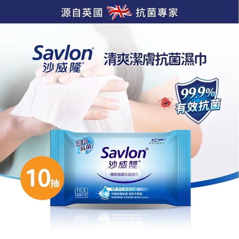 沙威隆 清爽潔膚抗菌濕巾 10抽x4包