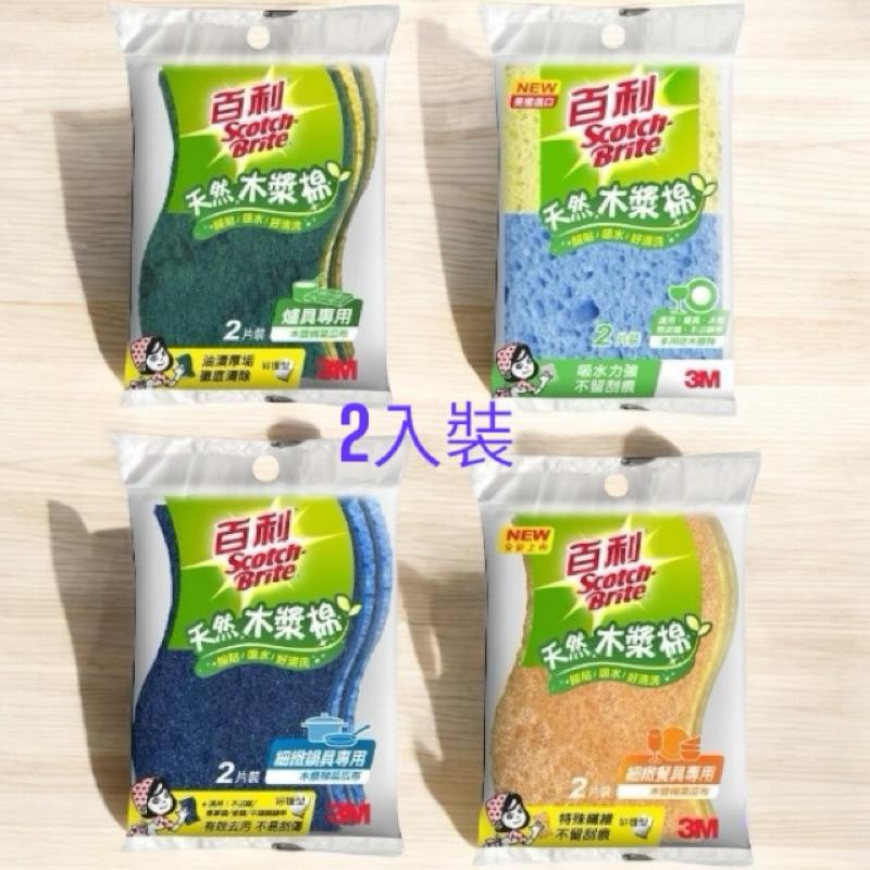 3M 百利 天然木漿棉菜瓜布/ 2入裝 多款任選|410T細緻餐具|420T爐具|520T細緻鍋具|400T多用途木漿棉