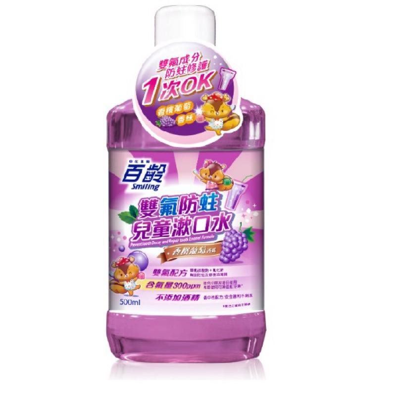 百齡 雙氟防蛀兒童漱口水500ml-香檳葡萄【24h百貨網】
