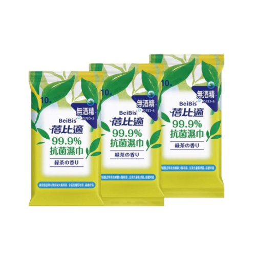 蓓比適 99.9%抗菌濕巾隨身包-綠茶香 10抽三入【24h百貨網】