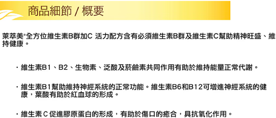 | 品名 | Nature Made 萊萃美 全方位維生素B群加C 活力錠 300粒 |