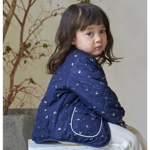 Petit main 兩穿海軍藍燙金櫻桃厚軟毛外套