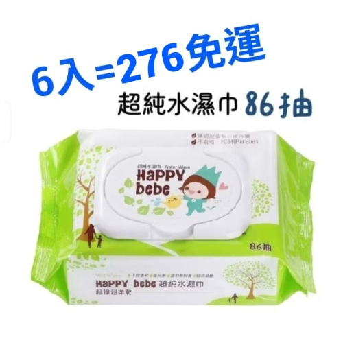 Happy bebe 濕紙巾 超純水 86抽含蓋 6入裝
