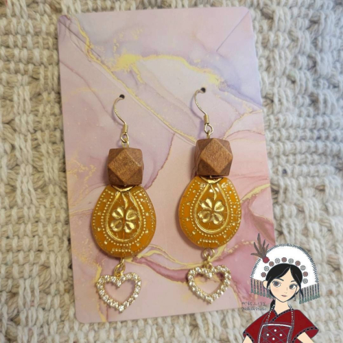【nakaw.studio】琥珀戀曲耳環 木質幾何 愛心墜飾 秋日橙光 手作復古耳飾