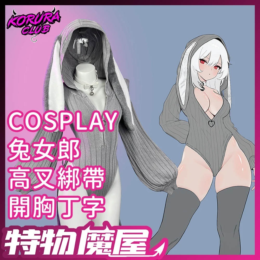 商品名稱:KORURACLUB COSPLAY角色扮演 針織高叉綁帶連身緊身性感長袖連帽耳朵兔女郎