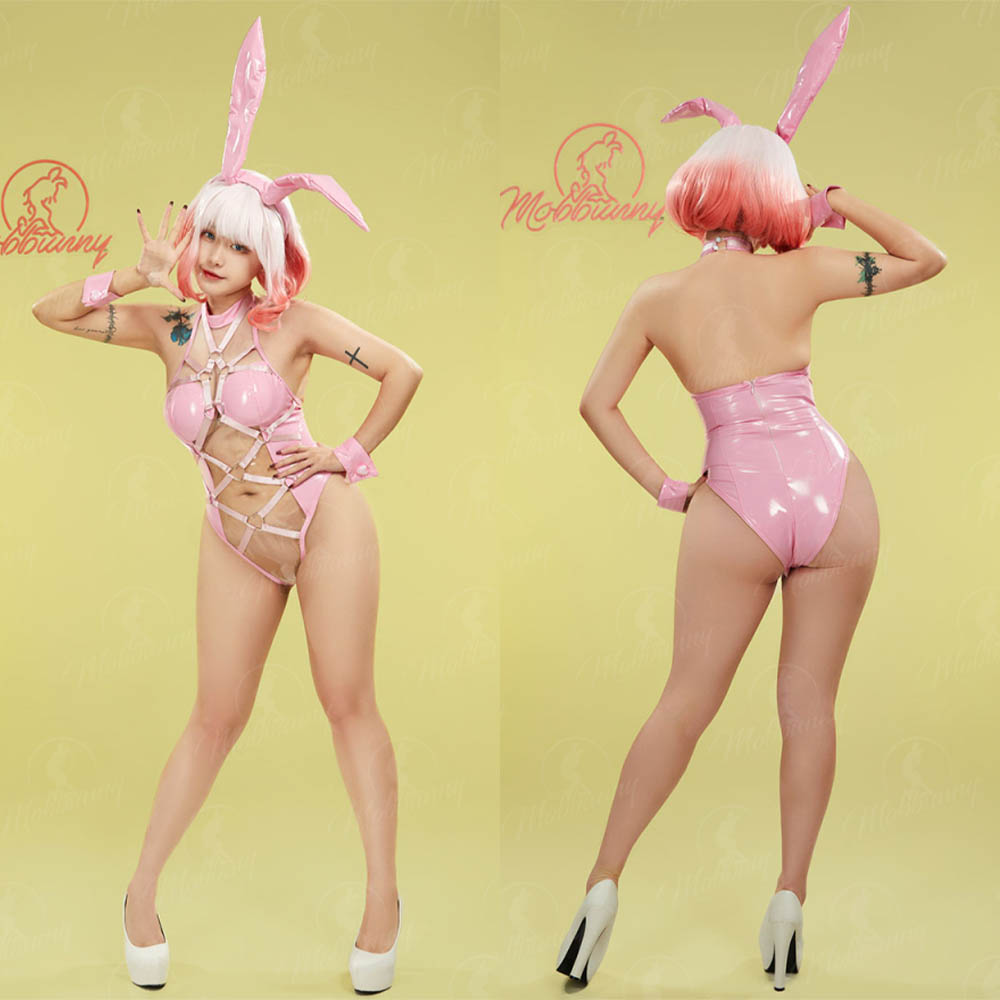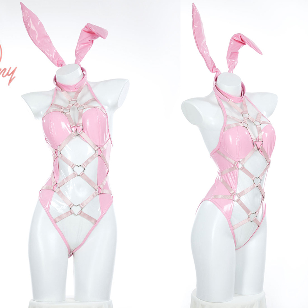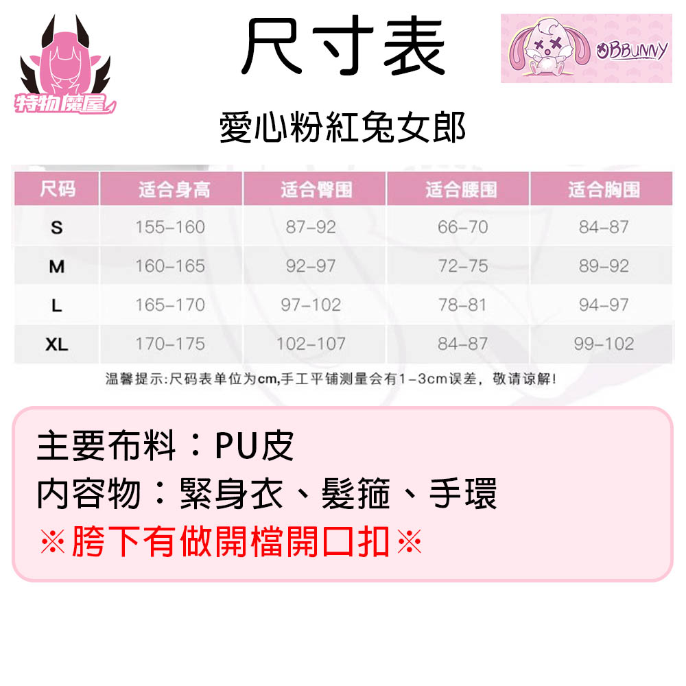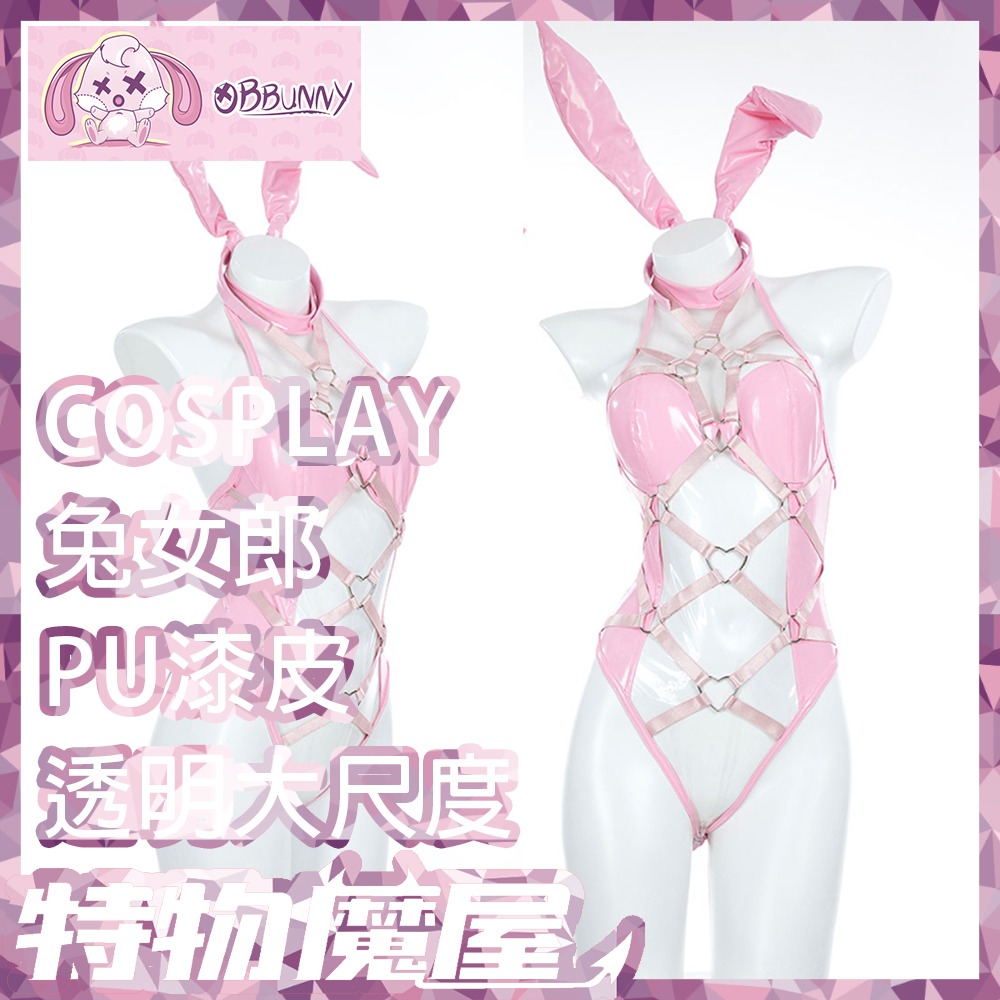 商品名稱:爆了個兔 原創 愛心粉红兔女郎 COSPLAY 甜美兔子洞 連身 透明 綁帶 PU漆皮