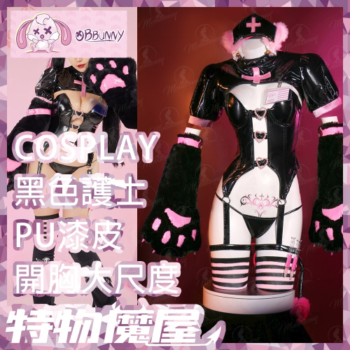 商品名稱:COSPLAY角色扮演 小惡魔貓咪護士 可愛萌爪獸爪 PU漆皮馬甲吊帶開胸丁字