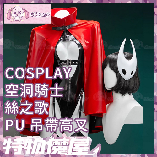商品名稱: COSPLAY角色扮演 萬聖節 空洞騎士絲之歌大黃蜂同人版 PU皮 斗篷高叉連身開胸緊身吊帶連身衣