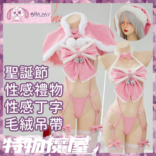 商品名稱:COSPLAY 聖誕節 性感粉紅禮物 毛絨蝴蝶結吊帶丁字 內衣套裝