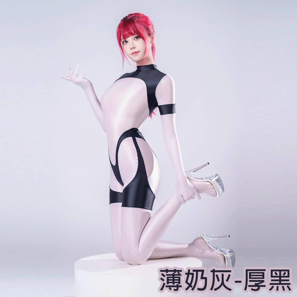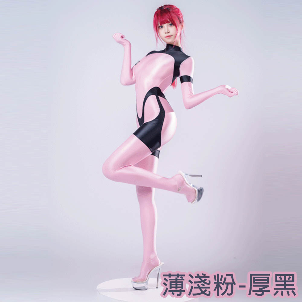 商品名稱:阿叔特皮ASHOTPLZ 錦氨薄厚 拼接 全包緊身連身衣 長袖連襪 油亮 背後拉鍊式 衣款<薄厚拼款>