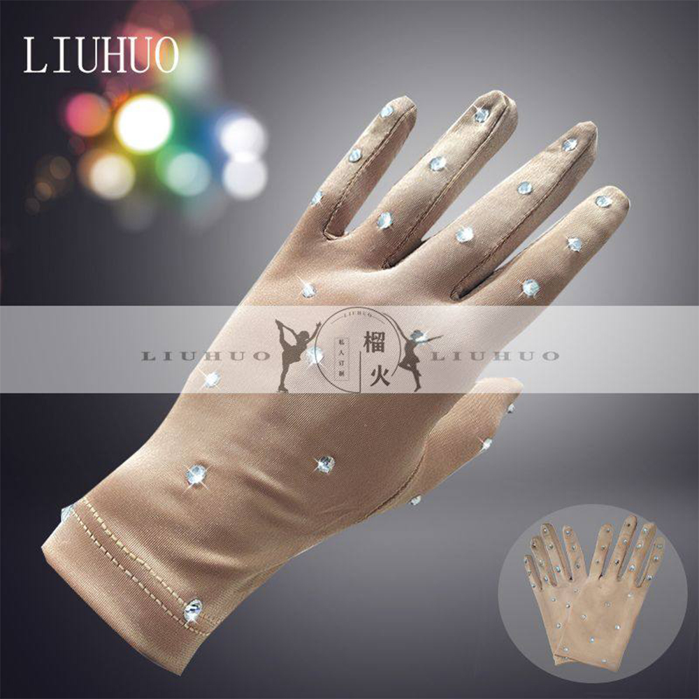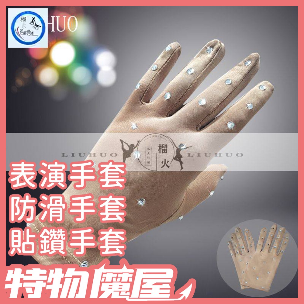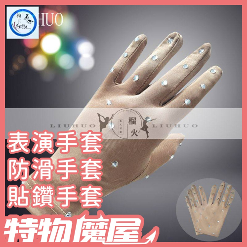 商品名稱:花式滑冰表演手套 兒童閃鑽手套 燙鑽魔術手套 防滑手套