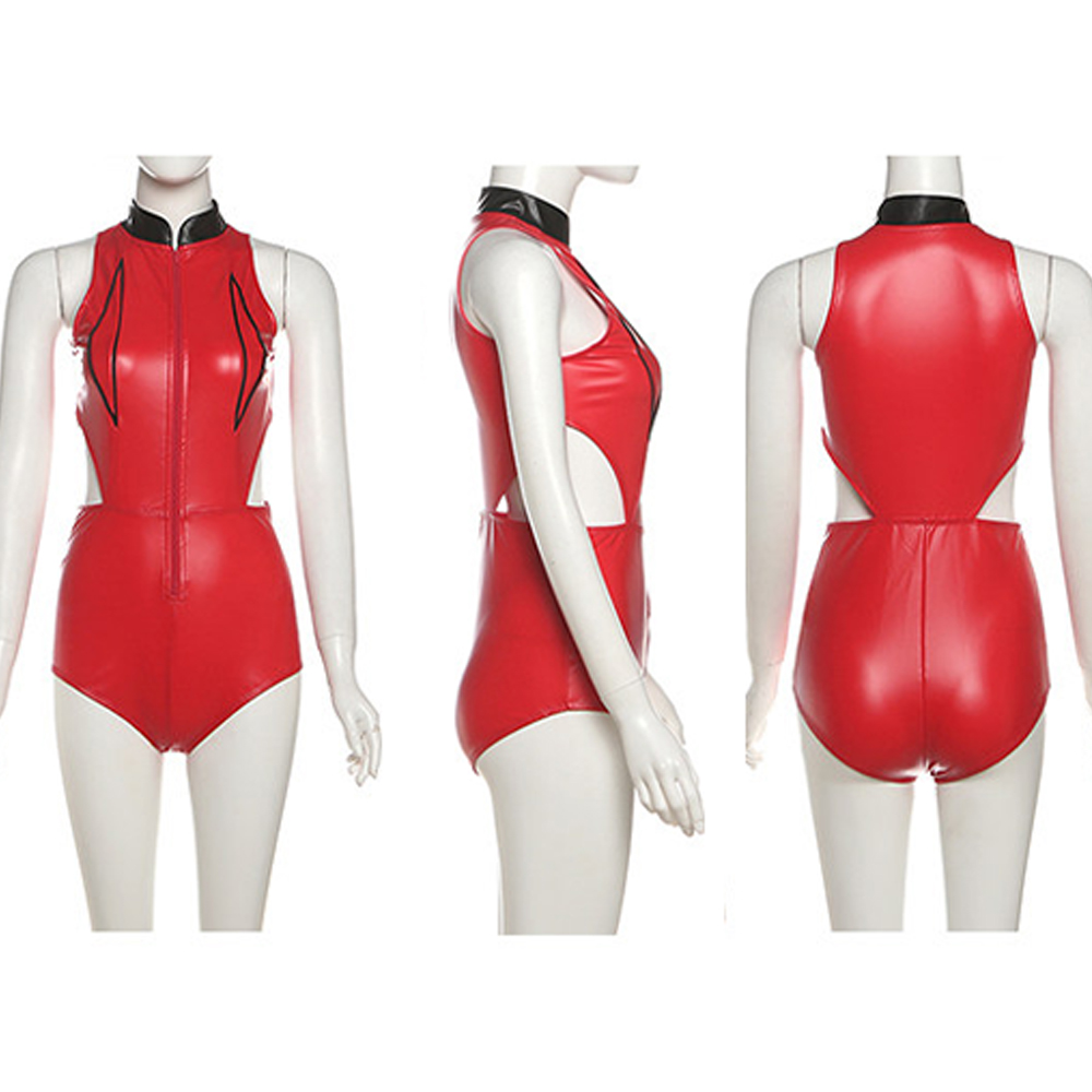 商品名稱:時尚設計感 夜店風DJ風撞色開胸前拉鍊無袖背心鏤空露腰顯瘦連身衣連身褲短褲