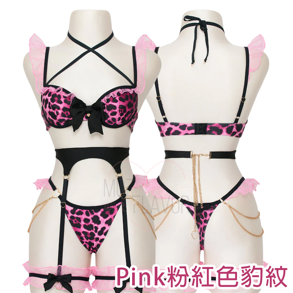 商品名稱:豹紋辣妹風格成套內衣套裝 吊帶丁字內褲 低腰內褲
