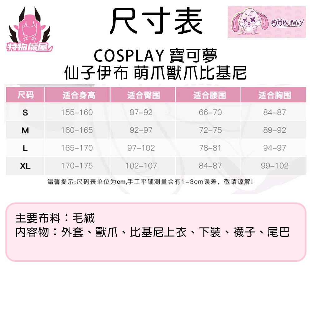 商品名稱:COSPLAY角色扮演 寶可夢神奇寶貝 仙子伊布仙子精靈同人 毛绒萌爪獸爪比基尼毛毛套裝