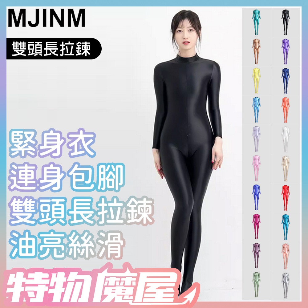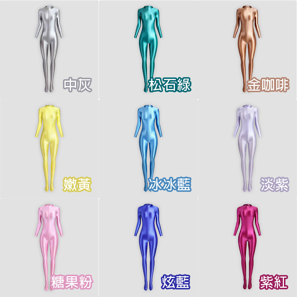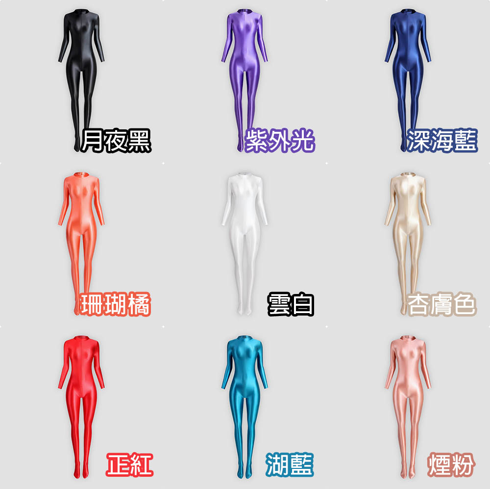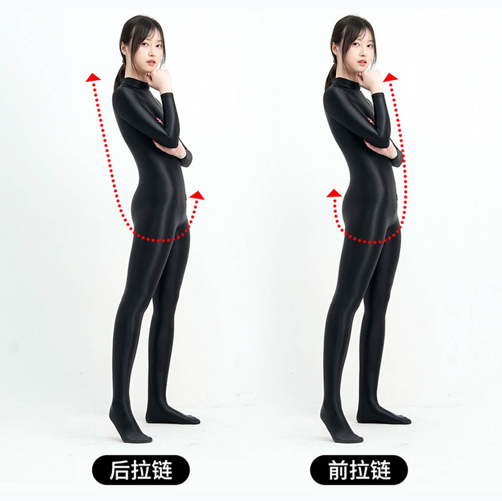 商品名稱:彈力絲滑光澤 塑身健美運動 緊身衣連身衣褲 雙頭前後長拉鍊開襠 長袖包腳 泳衣泳裝