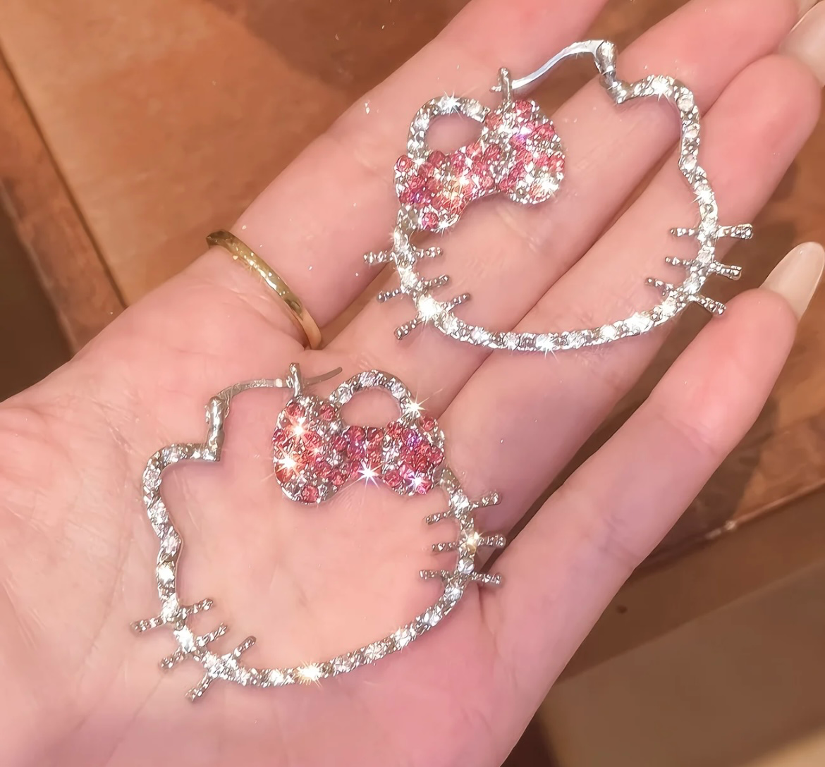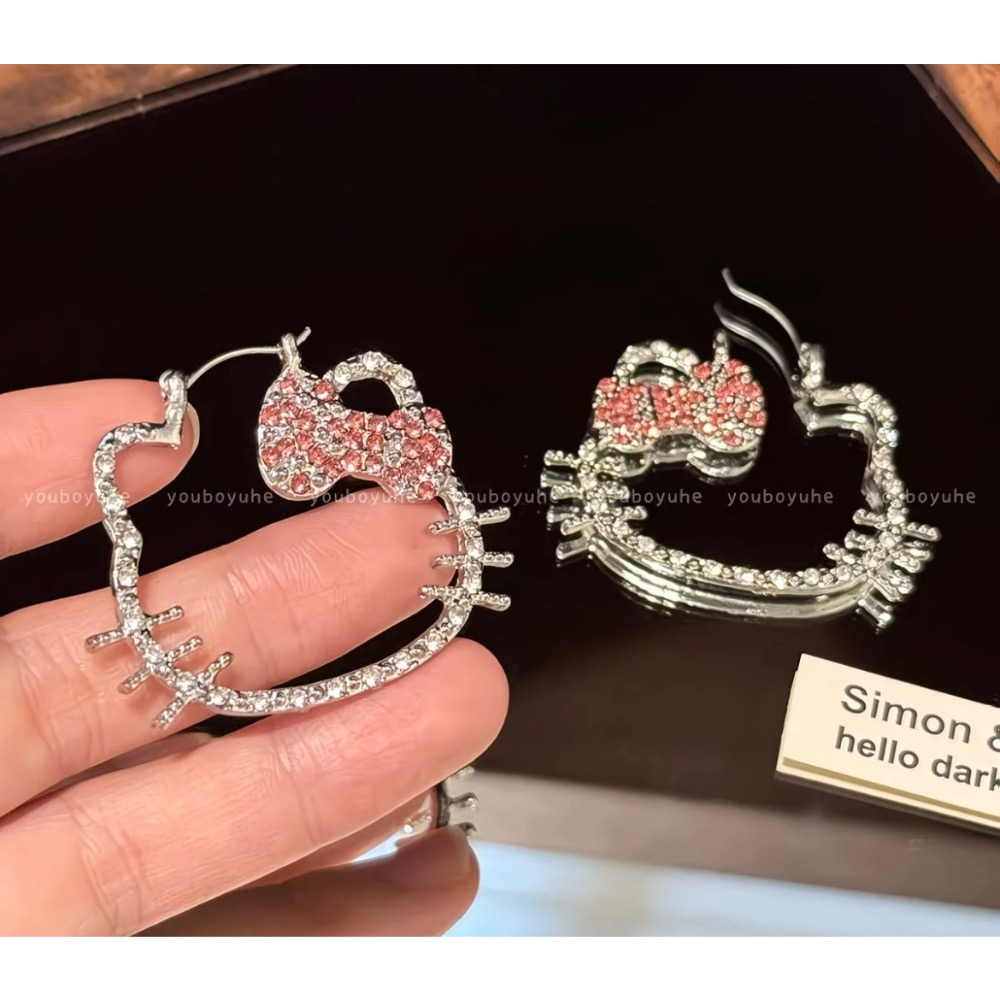 kt猫咪鏤空銀色誇張個性耳圈女時尚復古可爱 2025新款耳環耳飾