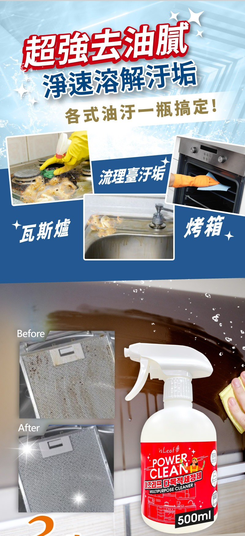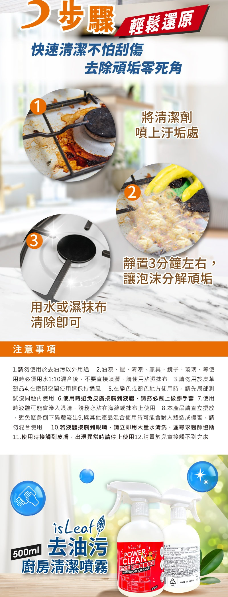 【韓國isLeaf】去油污廚房清潔噴霧500ml x1