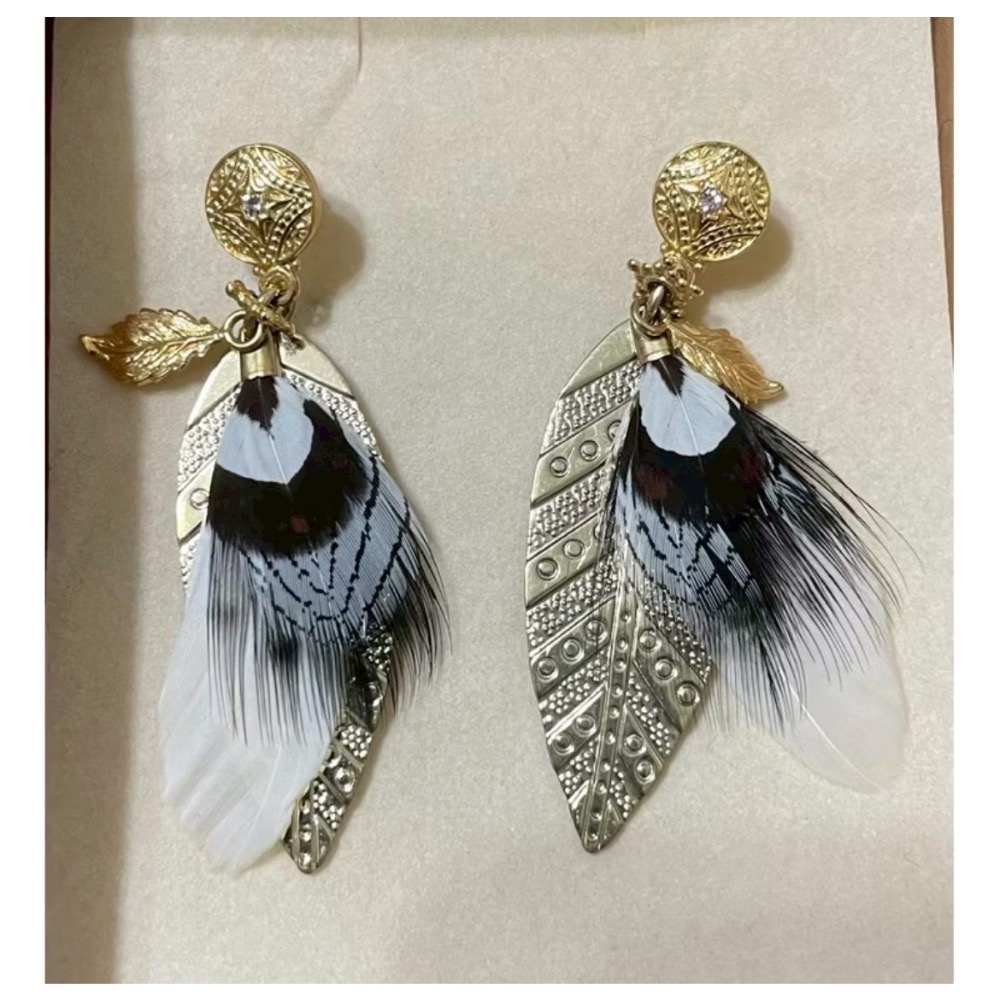 法國手工珠寶GAS Bijoux民族風羽毛墜式耳環