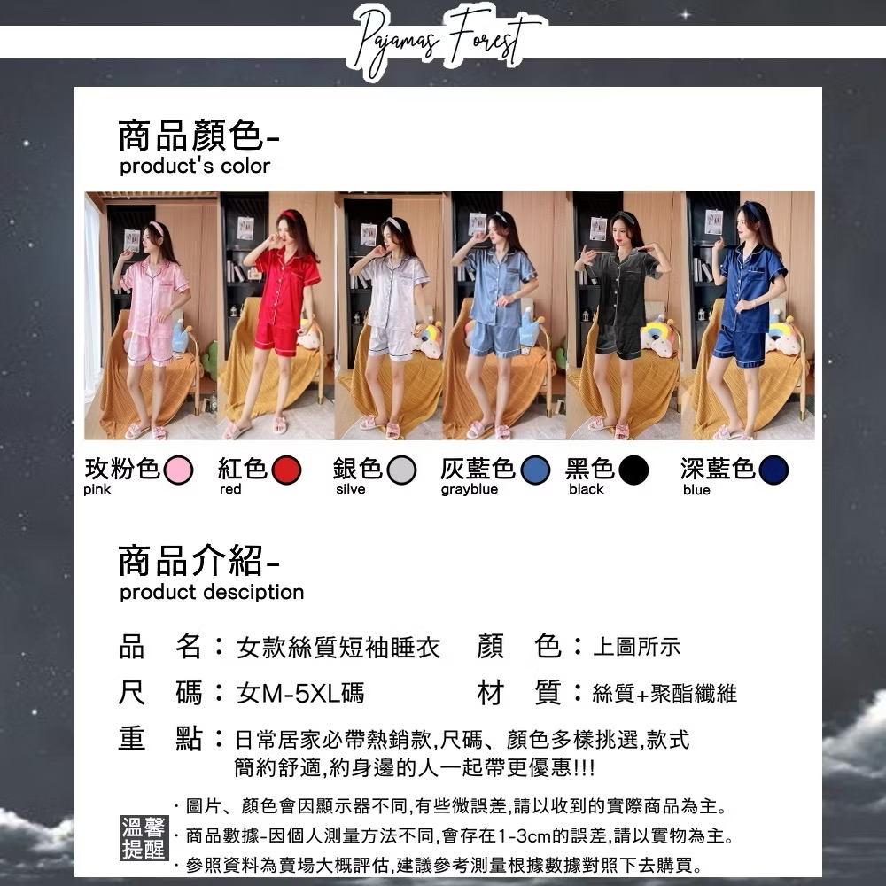 商品細節:仿真亮面絲質質地,兩件式套裝包含上衣短褲,無口袋,腰圍做鬆緊帶設計,材質為仿真絲綢所以較沒有彈力,喜歡的寶貝們建議平常穿尺碼往上購買⬆️