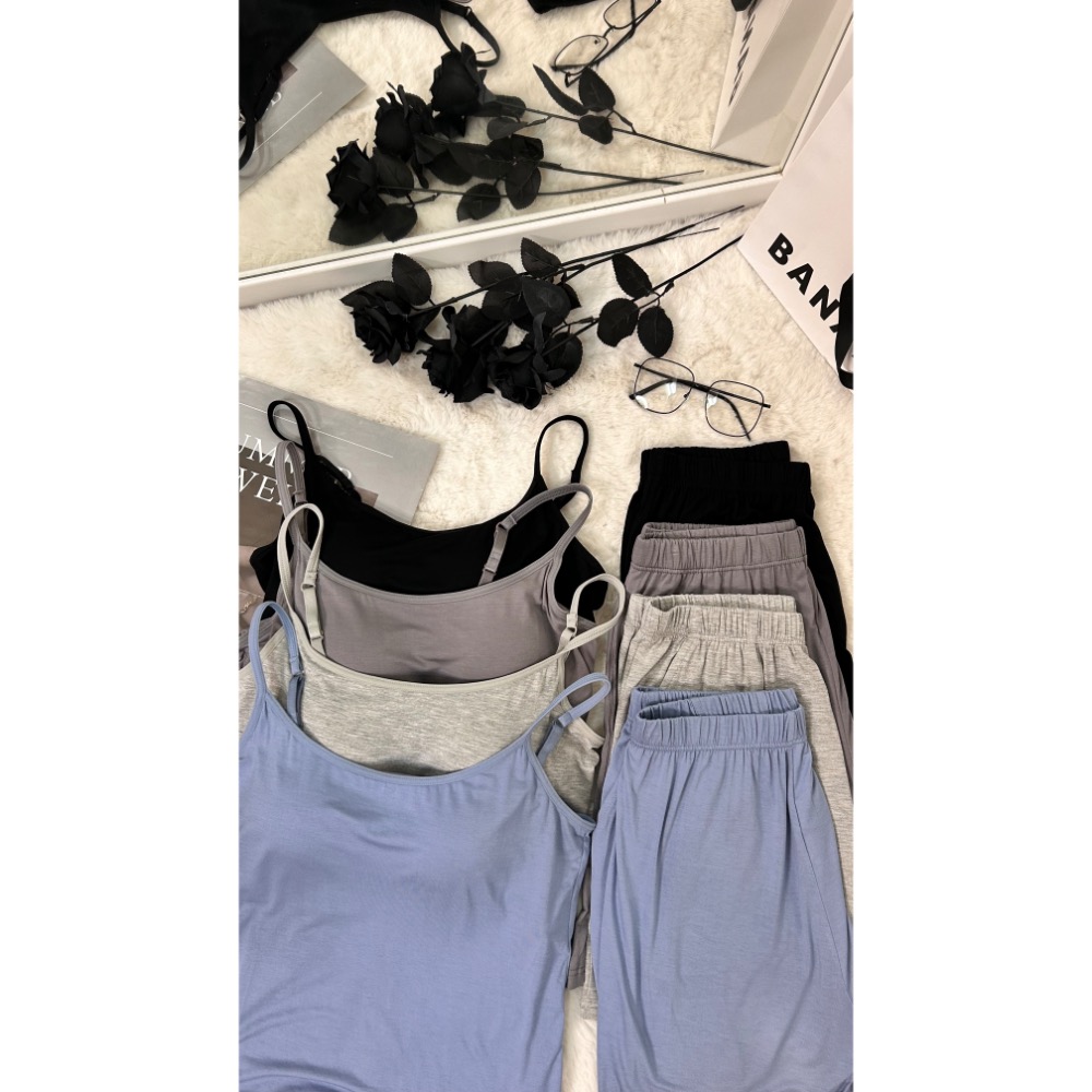 捧杯包覆型胸墊做設計,搭配可調節細肩帶上衣,整體做一個就算外穿也沒關係可當直接當小可愛、內搭!褲子兩側皆有做口袋設計,褲型較為直筒直接貼合腿腿,往下做微5分褲感,本商品設計較為貼身合身設計,儒喜歡寬鬆的寶貝們建議可以往上帶或是參考別款🤍
