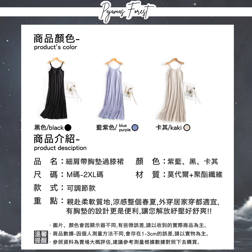此款為有胸墊睡裙,莫代爾親膚材質,