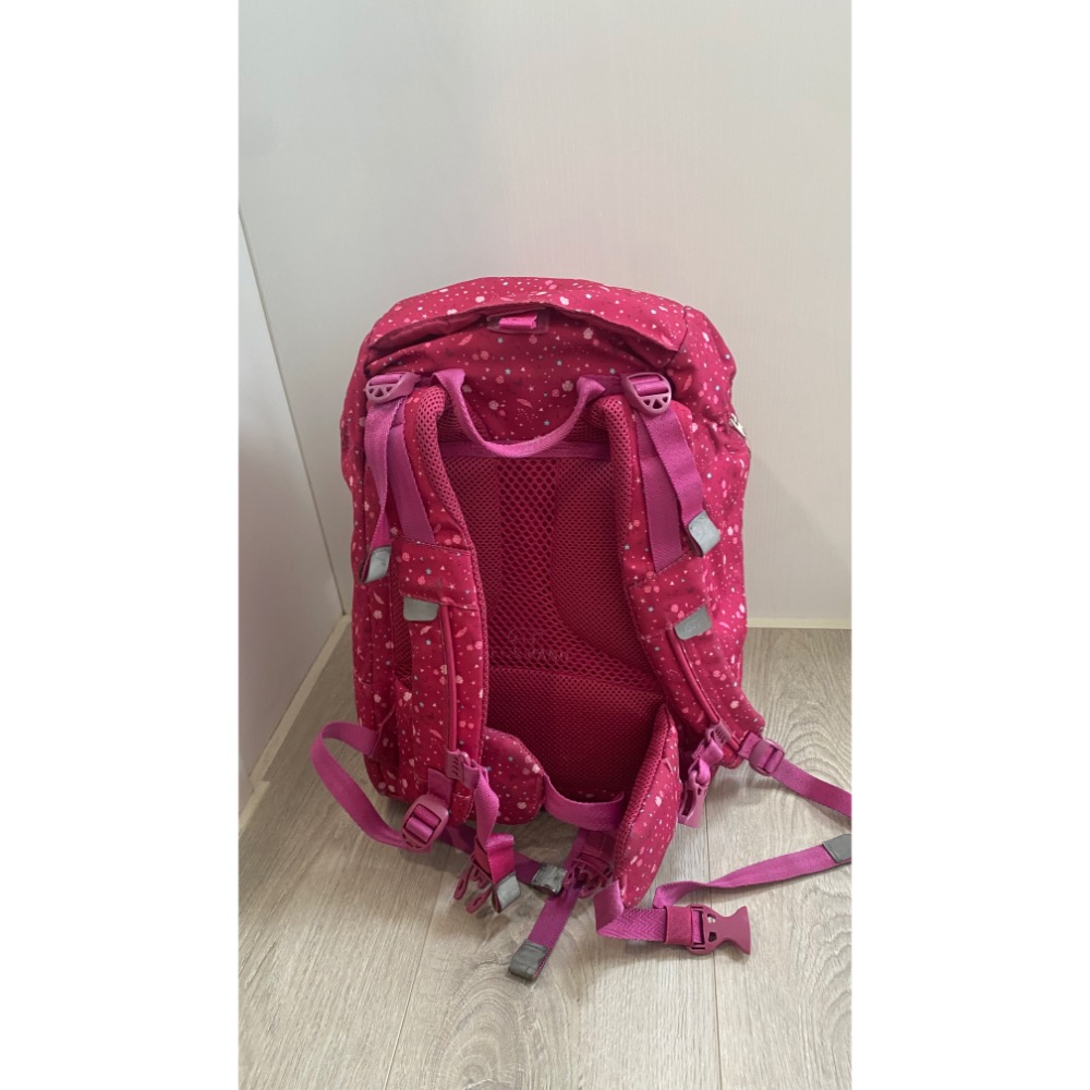 大約七至八成新,燈不會亮,裡面有兩層可以放書,一個可以放其他小東西,兩邊側邊有放水壺的格子,格子上有拉鏈不會掉下來,前面的正方形格子有地方可以掛鑰匙。