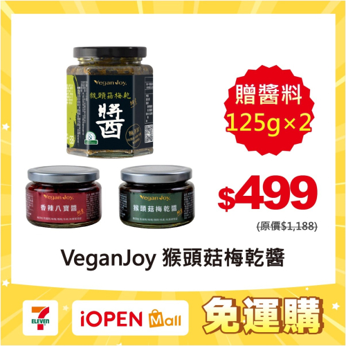 【7-ELEVEN 門市團購】【VeganJoy年末回饋】猴頭菇梅乾(250g/罐)|贈125g醬料兩罐(隨機出貨)