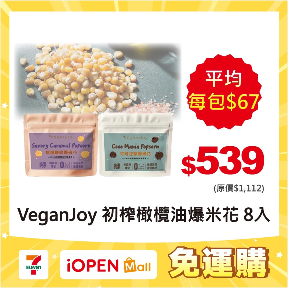 【7-ELEVEN 門市團購】特級初榨橄欖油爆米花8入|可可狂想 焦糖鹽戀|35g/包 , 共八包|純素