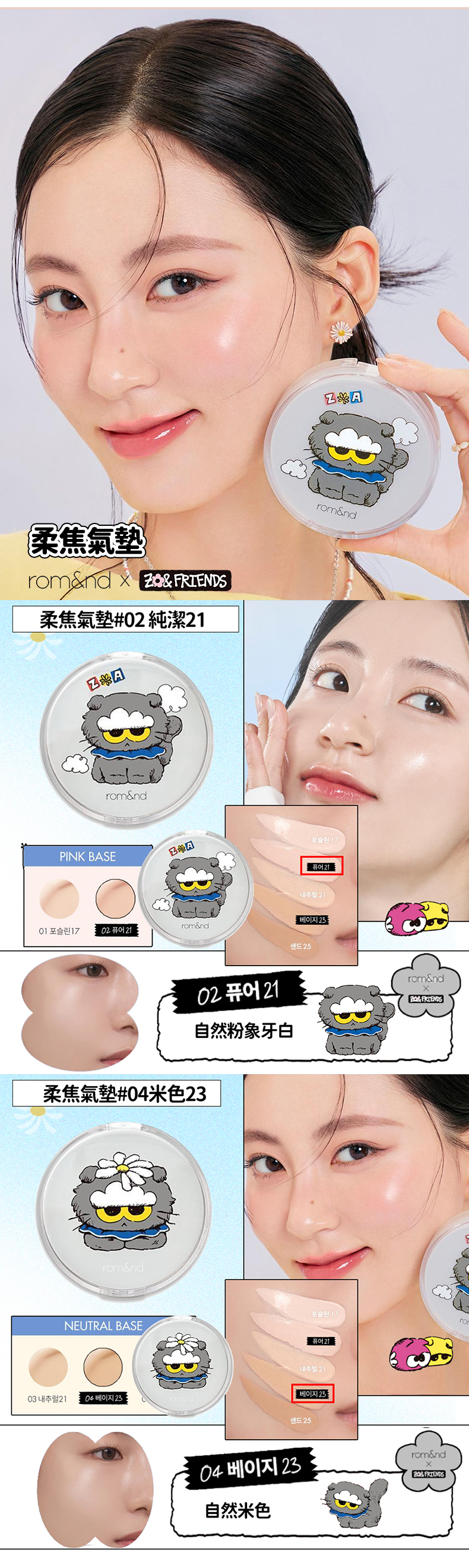 Rom&nd × ZO&FRIENDS|聯名限定彩妝系列(唇釉/眼影/唇膏/腮紅/打亮/氣墊粉餅)