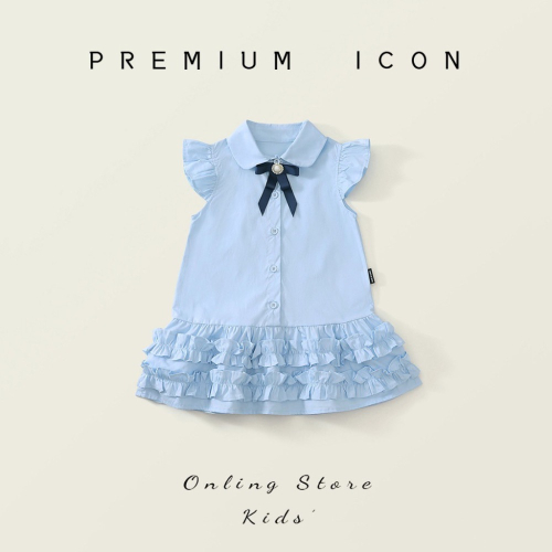夏季學院氣質款蝴蝶結小飛袖連衣裙