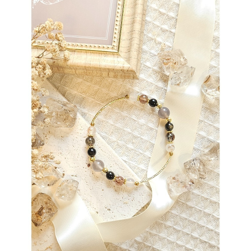 ▪︎黑金超七:並非指真正“超七”,而是水晶加上雲母類及赤鐵礦的共生體。是能量多元的水晶,能淨化磁場帶來正向的能量。