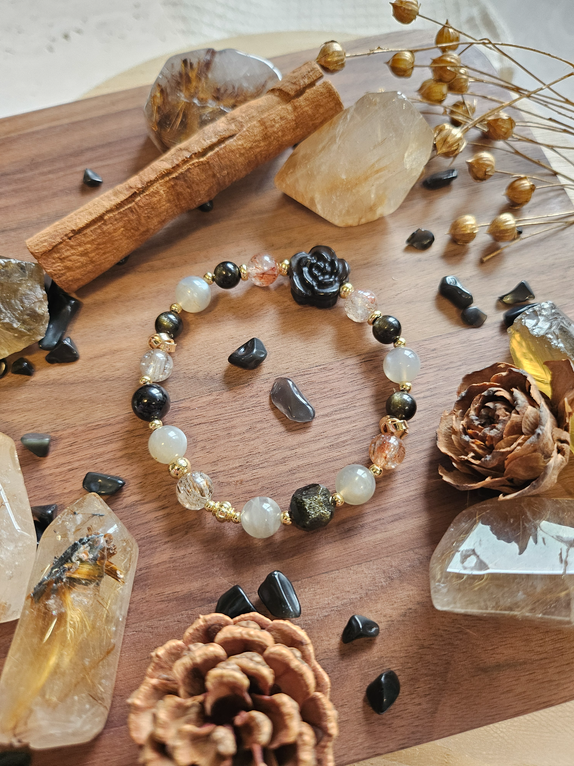 ▪︎金曜石:深層保護,阻絕負能量,如同黑夜中閃爍的星光,讓人安心踏實。