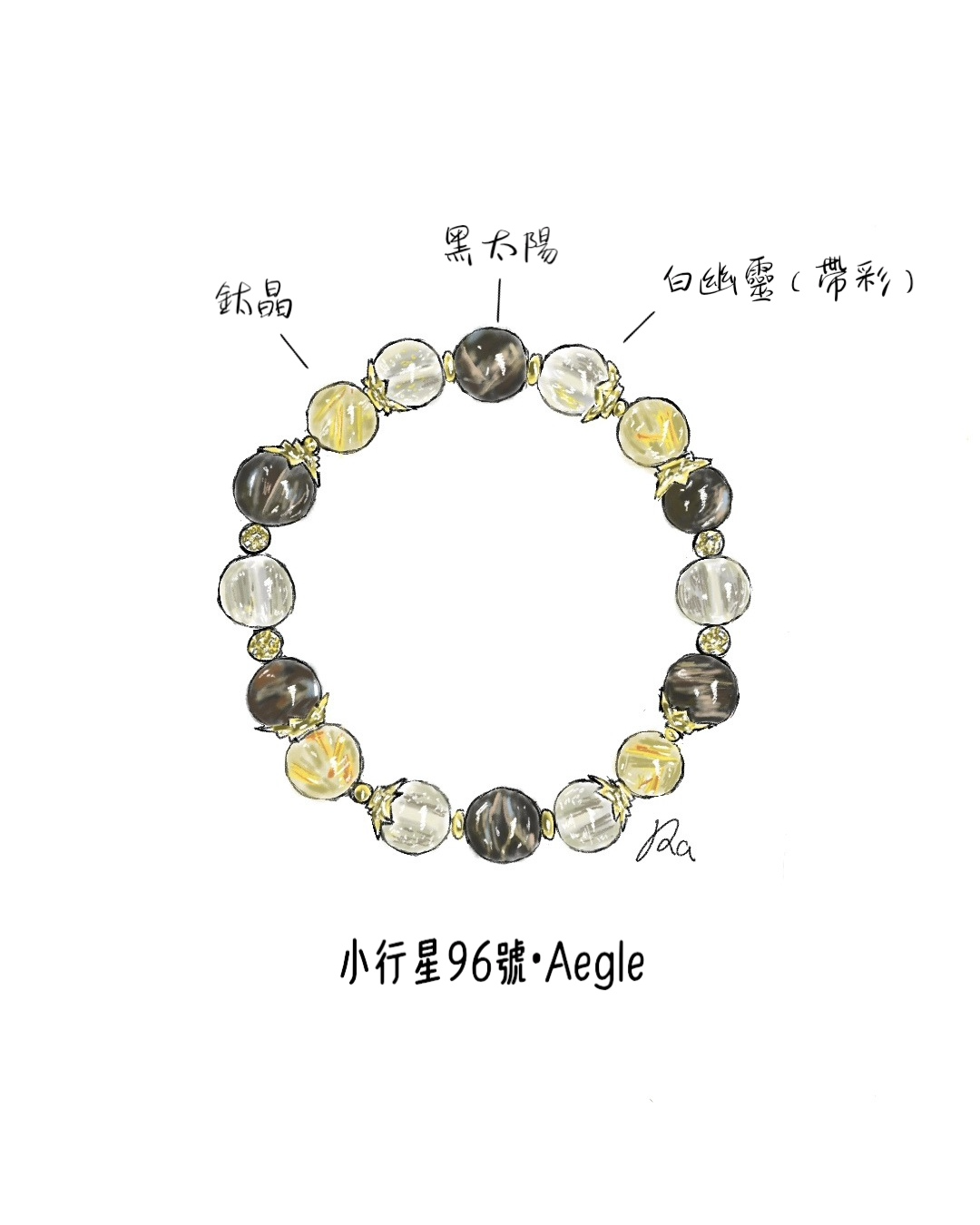 Aegle(伊格莉)源自古希臘神話中象徵「光輝」與「內在美」的女神。她是黃昏星群中最靜謐卻最堅定的一道光。這顆小行星如同一道靈魂的微光,在陰影中綻放不被擊潰的力量。