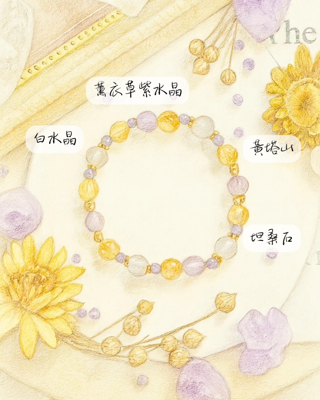 ▪︎薰衣草紫水晶:帶來安定的智慧與靈感,讓人能理性規劃、心境平穩,避免衝動投資或判斷。