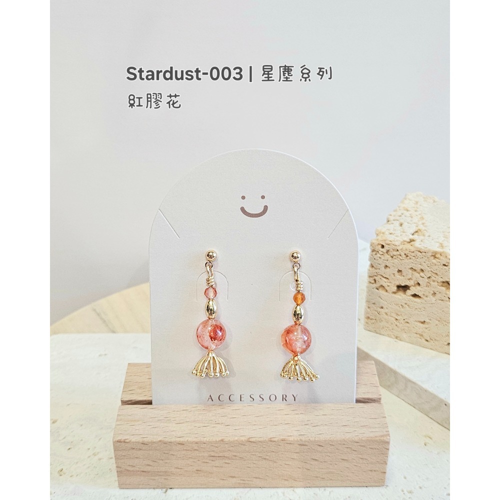 圓點耳針 x 紅膠花水晶 x 花蕊頭針