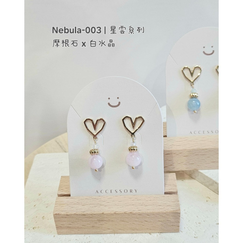 愛心簍空耳針 x 摩根石/海藍寶