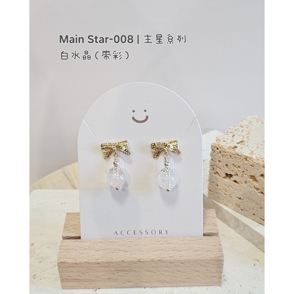 微簍空蝴蝶結造型耳針 x 白水晶帶彩