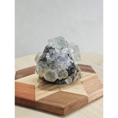 螢石:螢石在受到紫外線或高溫影響,能夠發出微微的光,在夜晚格外明顯,在古代被稱作"夜明珠",這種發光現象稱為磷光現象。為等軸晶系的礦石,能讓能量穩定並清理負能量,也能吸引別人目光。螢石中含大量氟元素,能夠帶來專注且堅定的意志,專心發展自己的目標及方向。螢石也稱為"智慧之石",使人聰穎不癡迷。