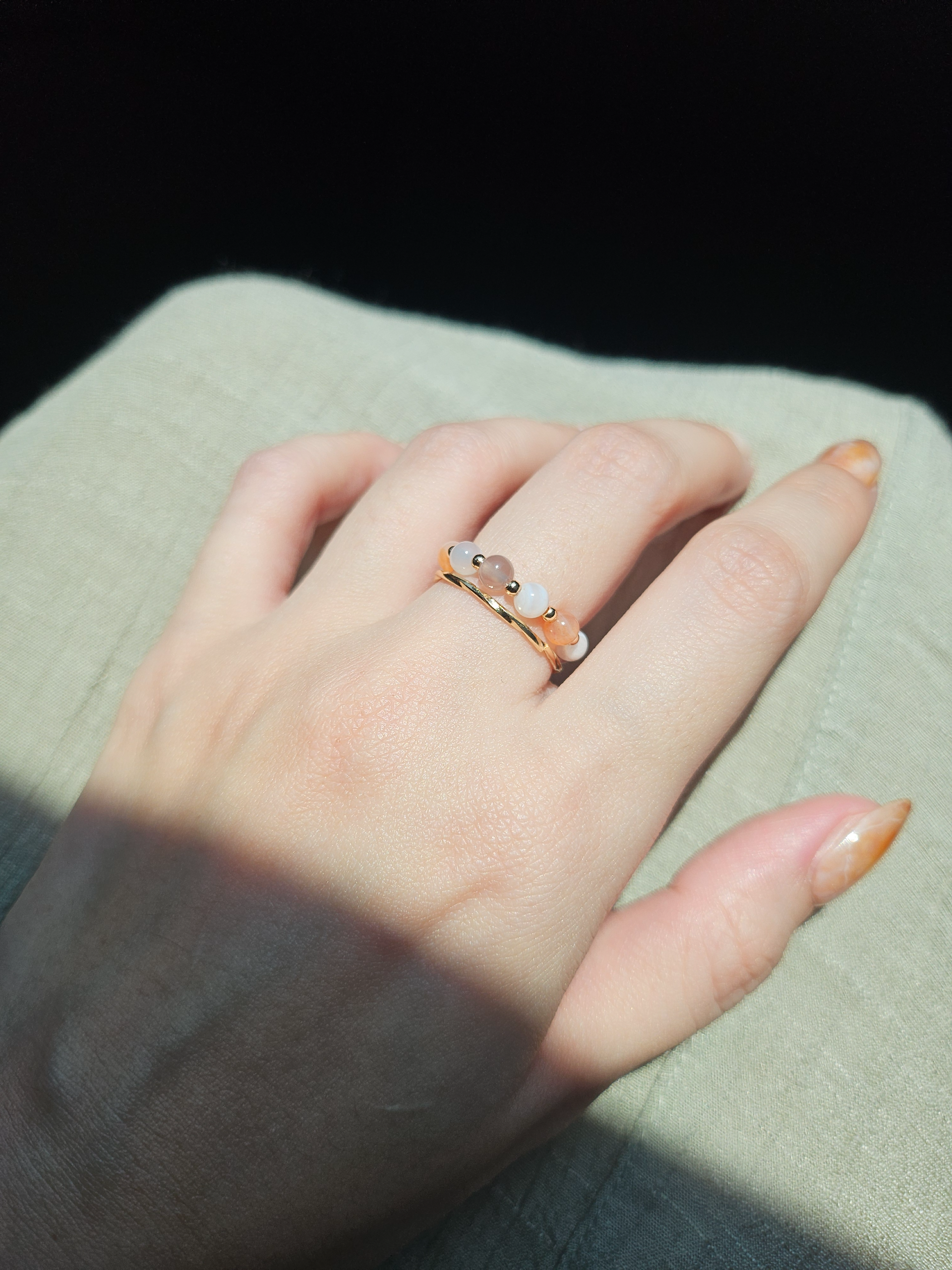 •戒指的隔珠採用不易鏽蝕的鈦鋼珠,方便旅人於佩戴時洗手。但任何材質皆非絕對防鏽,請避免長時間接觸水份。
