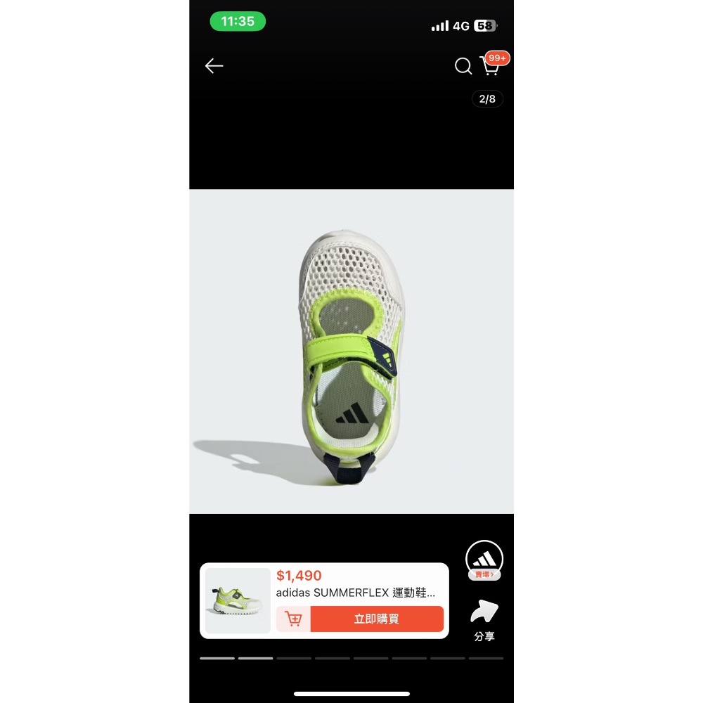 愛迪達綠色涼鞋