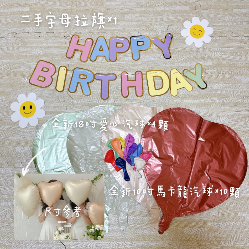 拉旗、愛心汽球4、圓形汽球10顆,生日佈置(大里喬