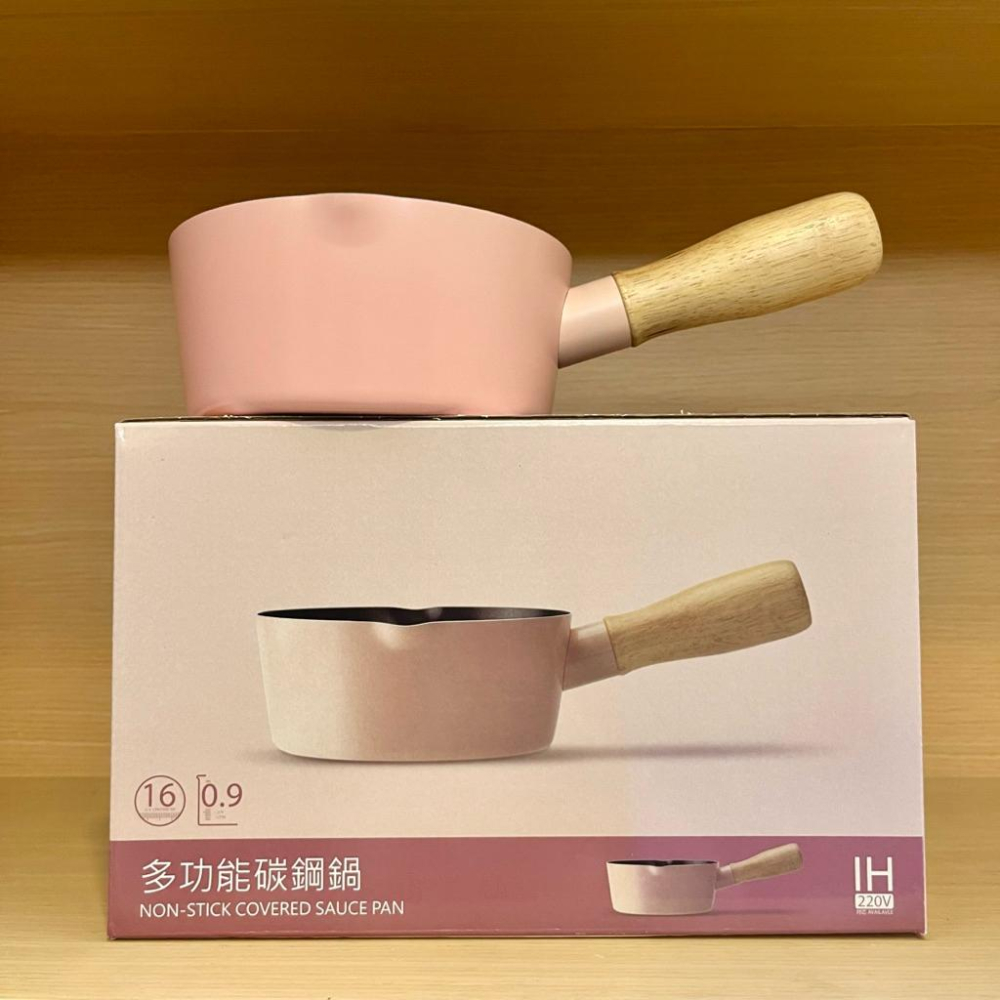 栗子小舖🌰|多功能碳鋼鍋 16cm 台灣製 多用途木柄湯鍋 粉色