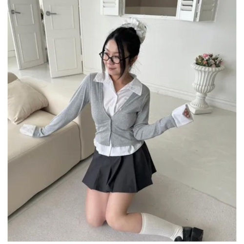 P.com 假兩件棉質拼接襯衫上衣