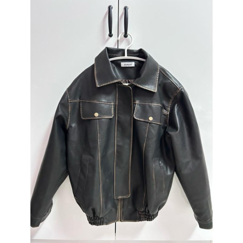 JINRONG 復古個性刷舊皮夾克 皮衣外套(送貝雷帽&髮圈)