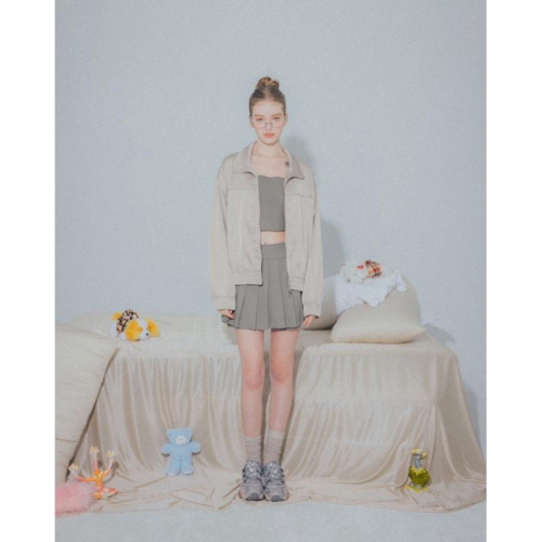 Meier.Q x oiiv-立領緞面壓線外套 銀灰L 全新