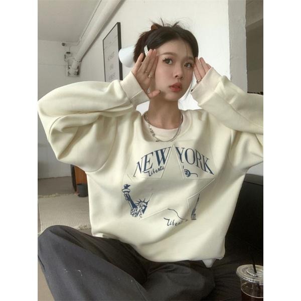 寬鬆印花設計圓領大學T