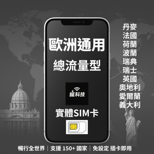瘋科技【全球旅遊上網wifi租借 / esim / 實體sim卡】歐洲10國網卡 實體SIM卡 丹麥 荷蘭 法國 波蘭