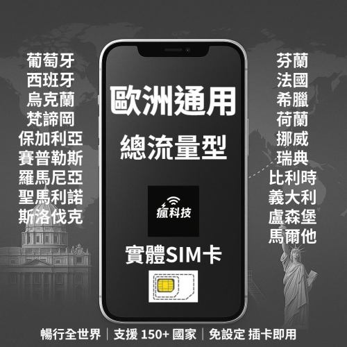 瘋科技【全球旅遊上網wifi租借 / esim / 實體sim卡】歐洲19國上網 實體SIM卡 羅馬尼亞 賽普勒斯 法國