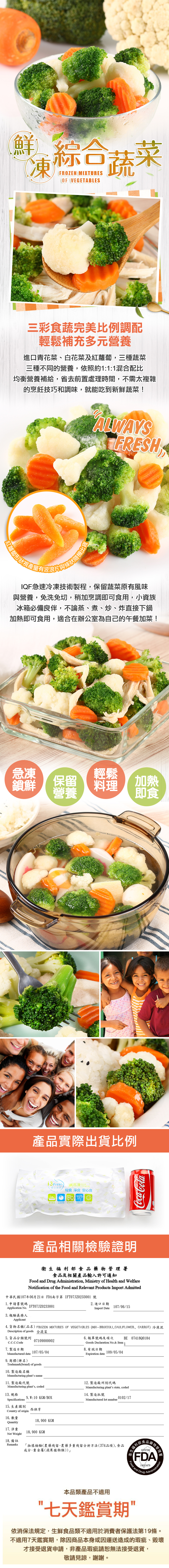 商品成份:紅蘿蔔、青花菜、白花菜