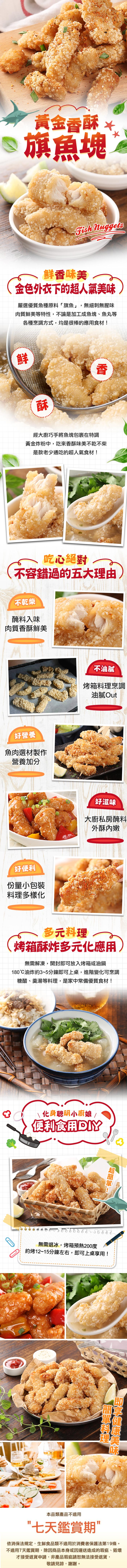 食用方式:不需解凍,直接放入180°C油炸約3~5分鐘,等產品變成金黃色浮出油面,即可食用。